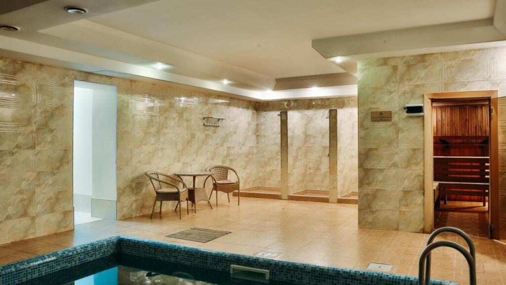 Также для гостей в отеле: массажный кабинет, сауна и баня. Для тех, кто не представляет отдых без водных удовольствий, есть бассейн и крытый бассейн. Для участников деловых встреч предусмотрен бизнес-центр. Сотрудники отеля по запросу организуют гостям трансфер.