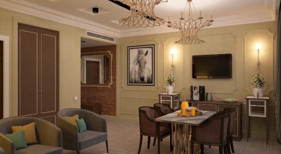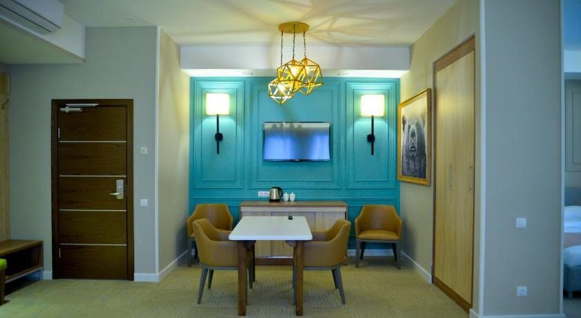 Номер уютно обставлен и оснащён необходимым, чтобы отдохнуть после долгого и насыщенного дня. Имеются телевизор, мини-бар, халат и тапочки. Перечисленные услуги есть не во всех номерах.