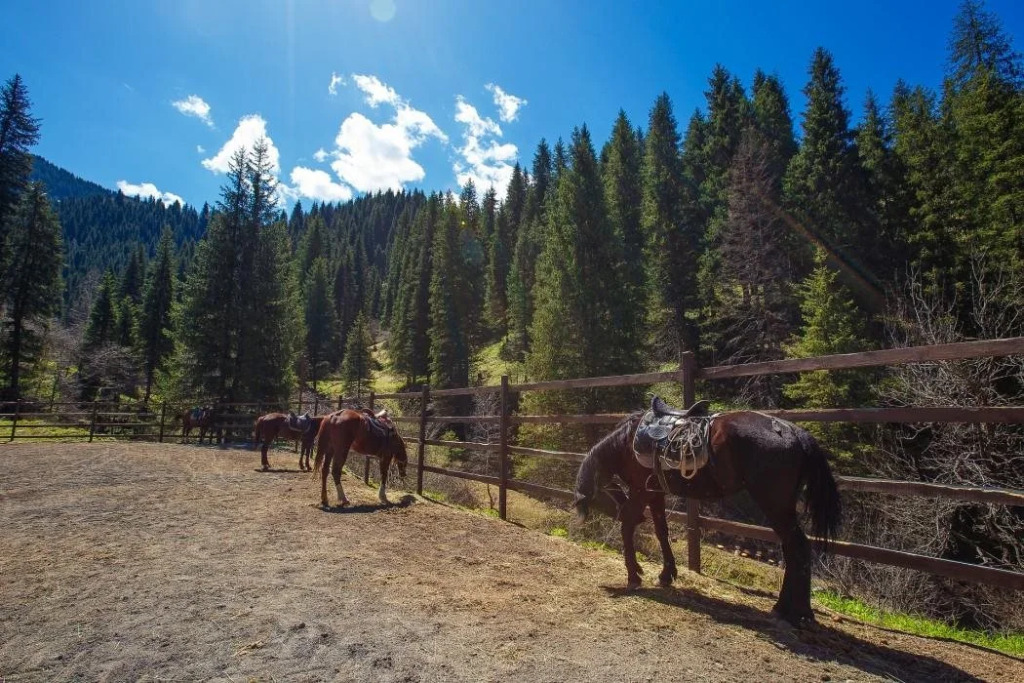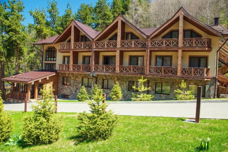 Отель OI-Qaragai Lesnaya Skazka 4 звезды, адрес на карте Бескайнар, Almaty region, Besqaynar Oh-Karagai gorge, Ile Alatau, Beskaynar, с характеристиками номеров и доступностью онлайн бронирования на ресурсе vashotel.ru , стоимость проживания и удобства.