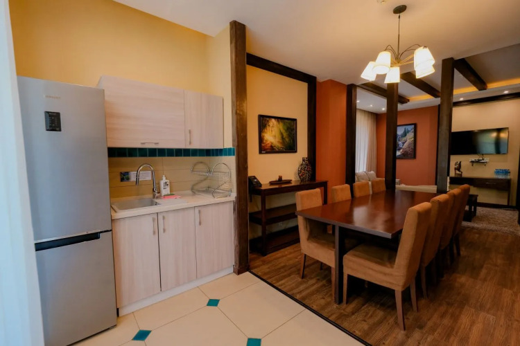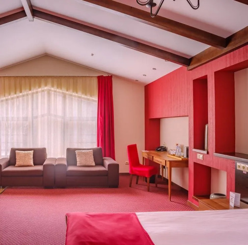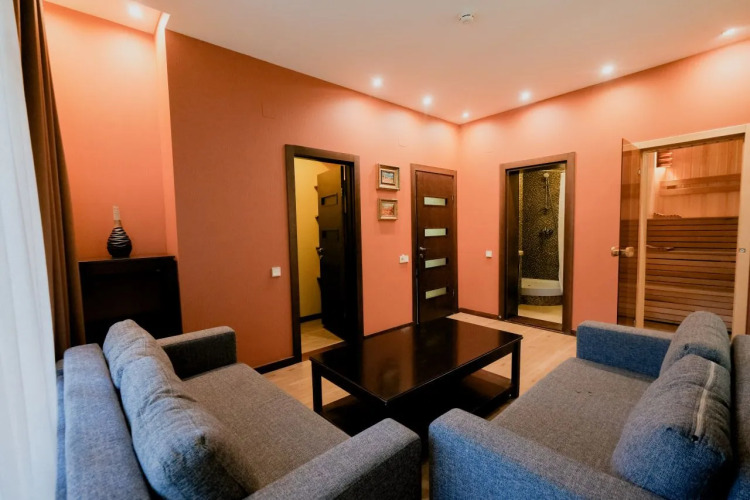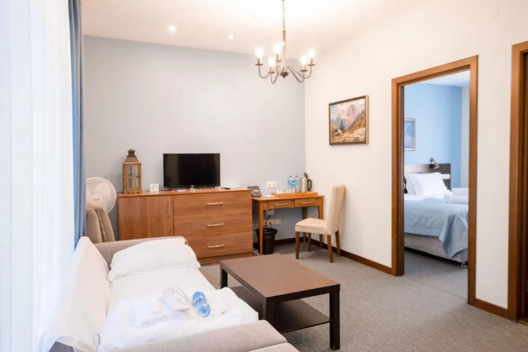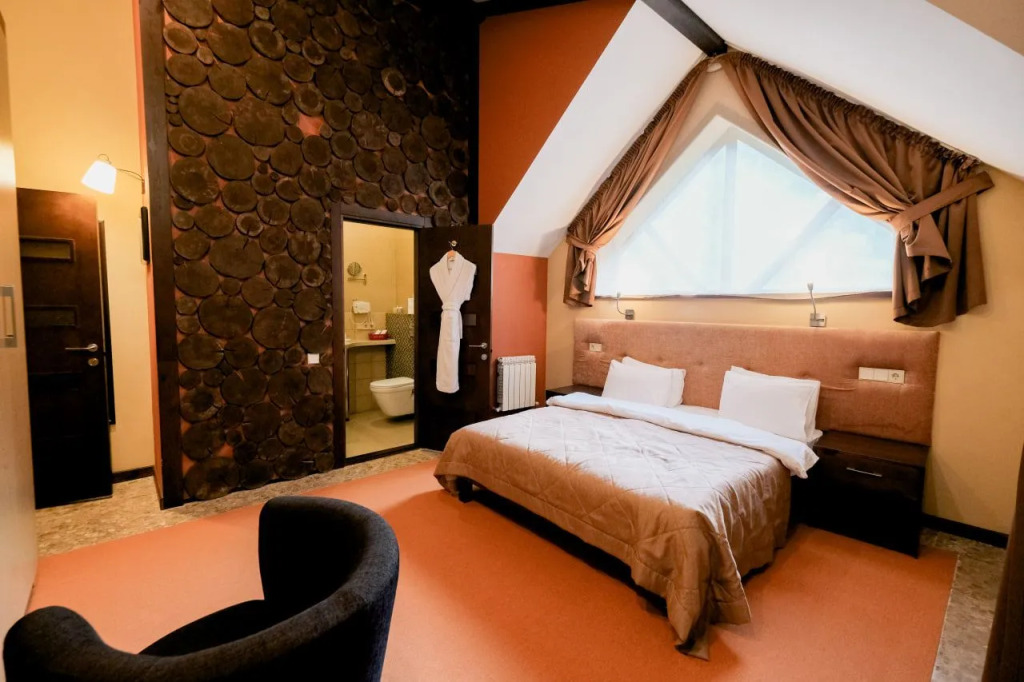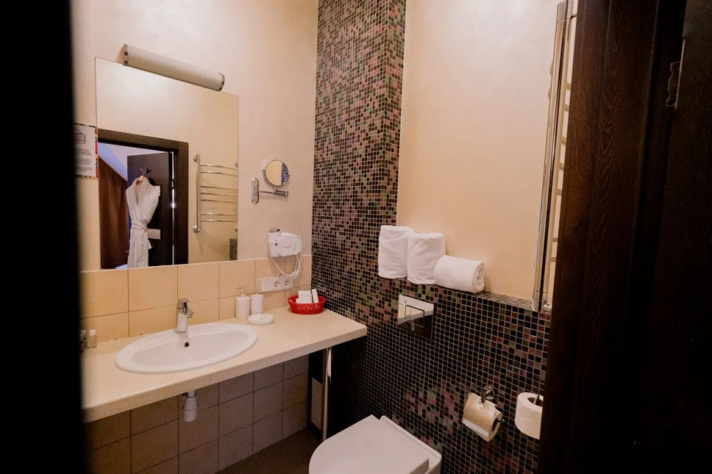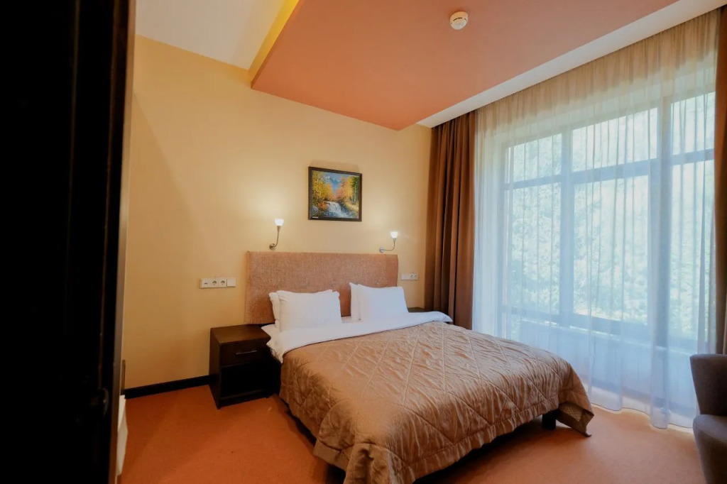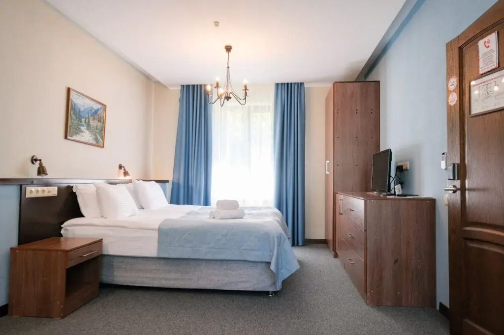 В номере вас будут ждать телевизор, мини-бар и халат. Оснащение зависит от выбранной категории номера.