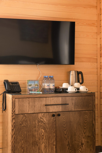 Номер уютно обставлен и оснащён необходимым, чтобы отдохнуть после долгого и насыщенного дня. Имеются телевизор и халат. Перечисленные услуги есть не во всех номерах.