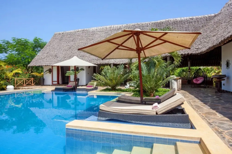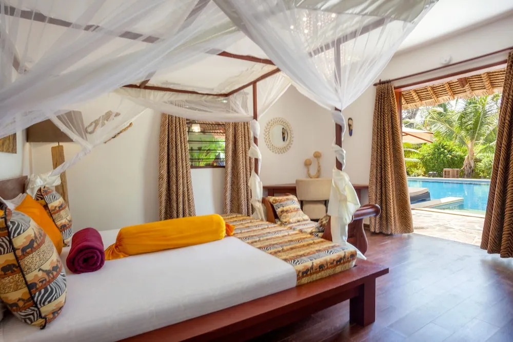 Отель Villa Raymond 5 звезд, адрес на карте Мсамбвени, Diani, Diani Beach, Kenya, с описанием номеров и доступностью онлайн бронирования на площадке vashotel.ru , цены проживания и удобства.