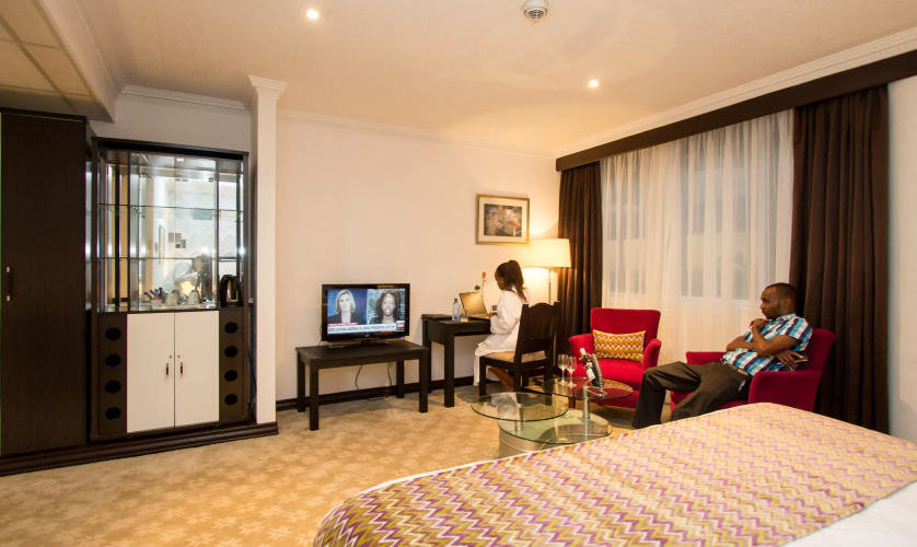Отель Panari располагает 137 элегантными и просторными номерами, в каждом из которых есть кондиционер, сейф, письменный стол, удобства для приготовления чая и кофе, холодильник, мини-бар и телевизор с возможностью просмотра спутниковых каналов. По запросу предоставляются детские кроватки и дополнительные спальные места.