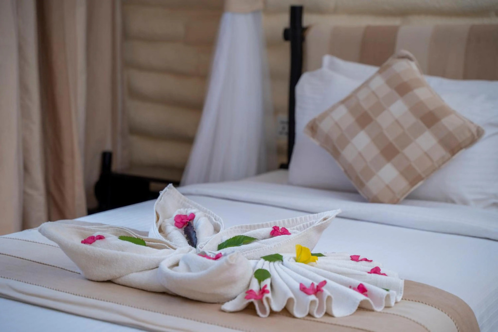 Номер уютно обставлен и оснащён необходимым, чтобы отдохнуть после долгого и насыщенного дня. Имеются душ, телевизор и халат. Оснащение зависит от выбранной категории номера.