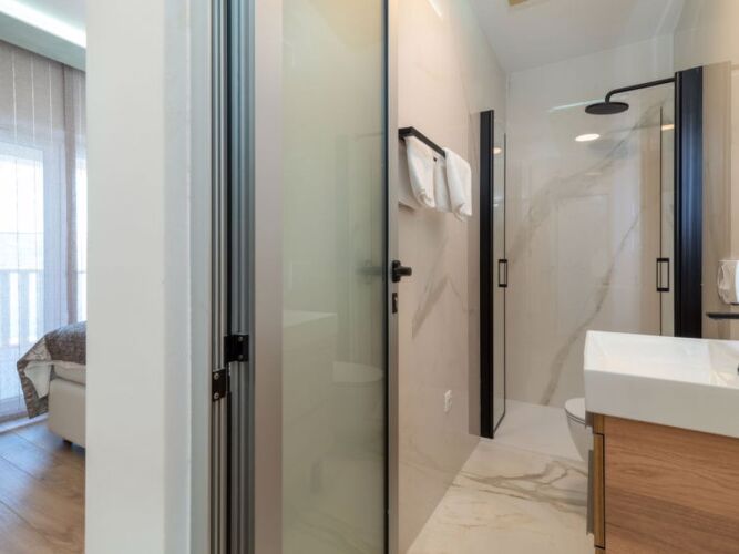 Номер уютно обставлен и оснащён необходимым, чтобы отдохнуть после долгого и насыщенного дня. Имеются душ и телевизор. Оснащение зависит от выбранной категории номера.