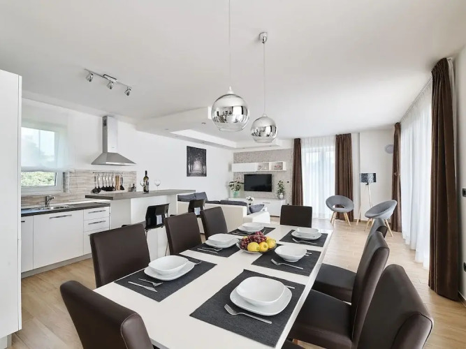 Хорошо, когда красота начинается сразу, как только выходишь за порог! Вилла «Detached Villa With Cozy Outdoor Kitchen And Swimming Pool Near Groznjan» находится в Грожняне. Эта вилла расположена 2 км от центра города. Рядом с виллой — Стадион Нерео Рокко, Базилика Палеокристина и Ярмарка Триеста.