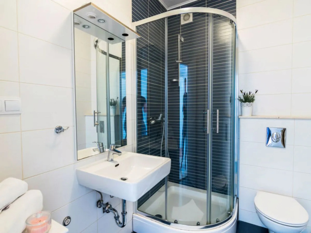 В номере вы найдёте душ и телевизор. Оснащение зависит от выбранной категории номера.