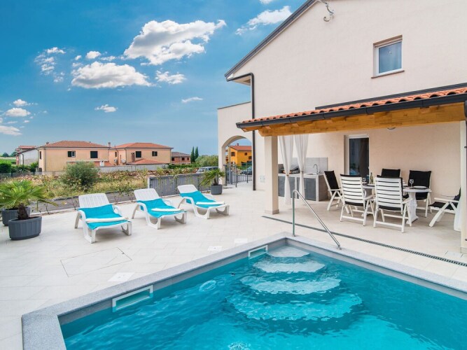 Отель Beautifully Decorated, Newly Built Holiday House With Private Pool for 8 People, адрес на карте Паолия, Alda Negrija 15, с описанием номеров и доступностью онлайн бронирования на сайте ВашОтель.RU , цены проживания и удобства.
