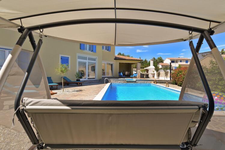 Среди развлечений на территории — площадка для барбекю. Здесь будем баловать себя водными процедурами: есть открытый бассейн.