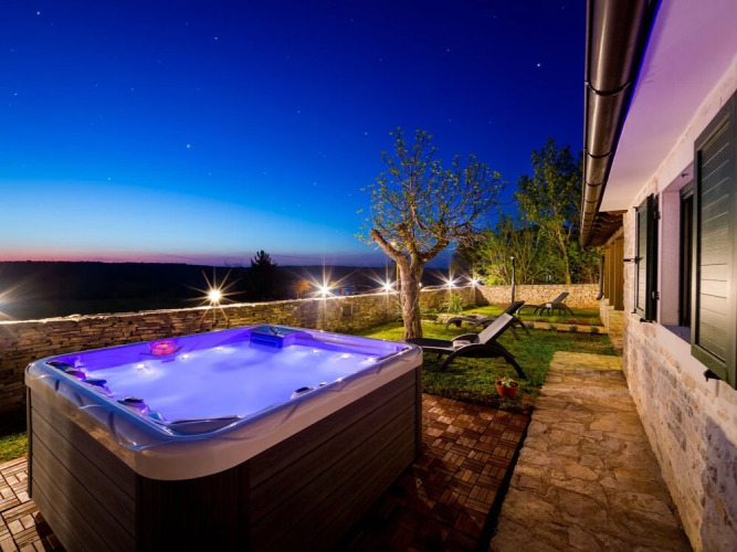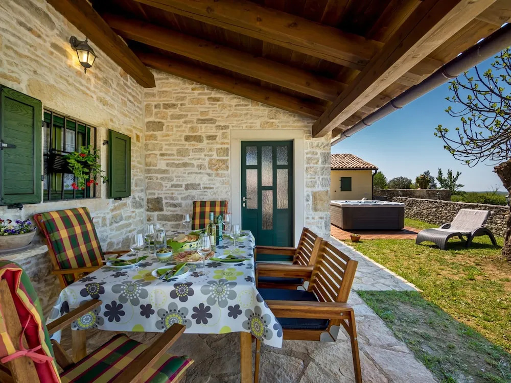 Отель Villa for Up To 6 Persons with Jacuzzi, Private Garden, Wifi, A/C 3 звезды, адрес на карте Жминь, Naselje Grguci 4, 52352, Kanfanar, Istria (county), HR, с описанием номеров и правом онлайн бронирования на ресурсе ВашОтель.RU , стоимость проживания и удобства.