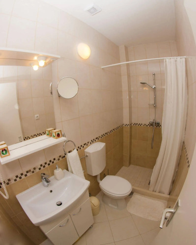 В номере вы найдёте душ и тапочки. Оснащение зависит от выбранной категории номера.