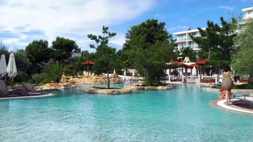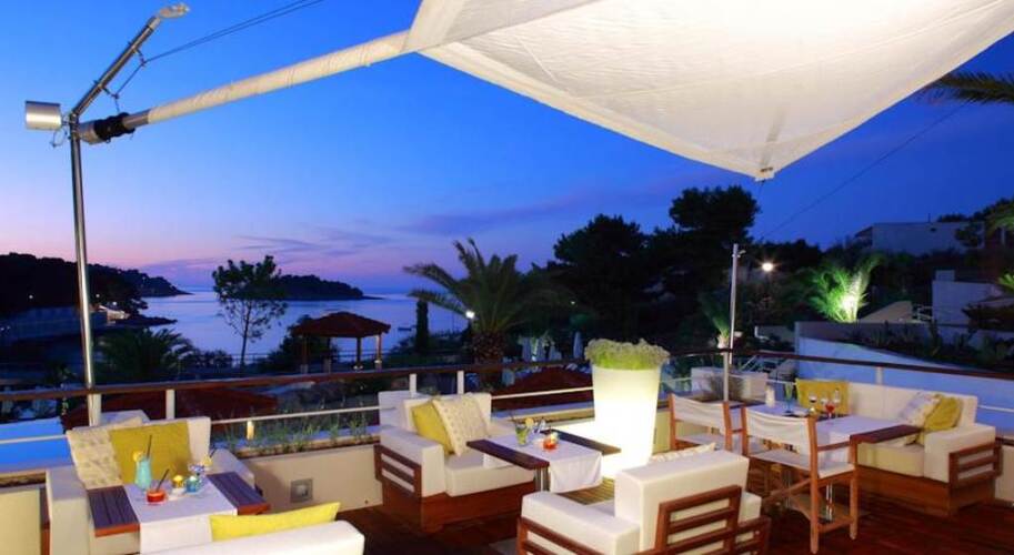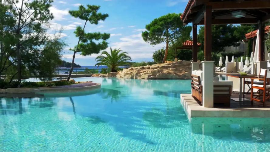 Отель Amfora Hvar Grand Beach Resort 4 звезды, адрес на карте Хвар, Ulica biskupa Jurja Dubokovica 5, с описанием номеров и доступностью онлайн бронирования на сайте vashotel.ru , стоимость проживания и удобства.