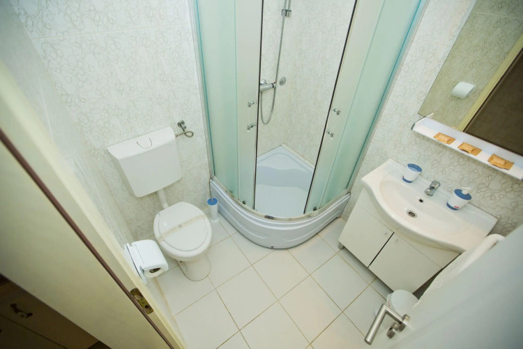 В номере вы найдёте душ и телевизор. Оснащение зависит от выбранной категории номера.