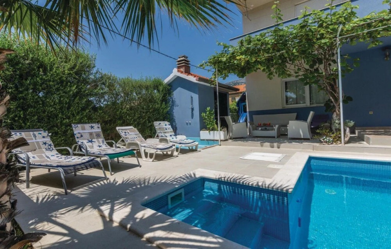 Отель Awesome Home in Kastel Luksic With 4 Bedrooms, Wifi and Outdoor Swimming Pool 3 звезды, адрес на карте Каштела, O.Jordana Viculina 8, с описанием номеров и возможностью онлайн бронирования на сайте vashotel.ru , стоимость проживания и удобства.