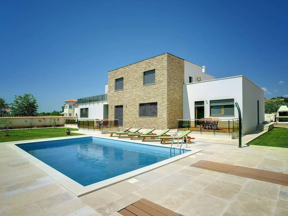 Отель Modern Villa Consisting of two Apartments With Private Pool, Beach at 1 km, адрес на карте Медулин, Munida 122, с характеристиками номеров и правом онлайн бронирования на площадке vashotel.ru , стоимость проживания и удобства.
