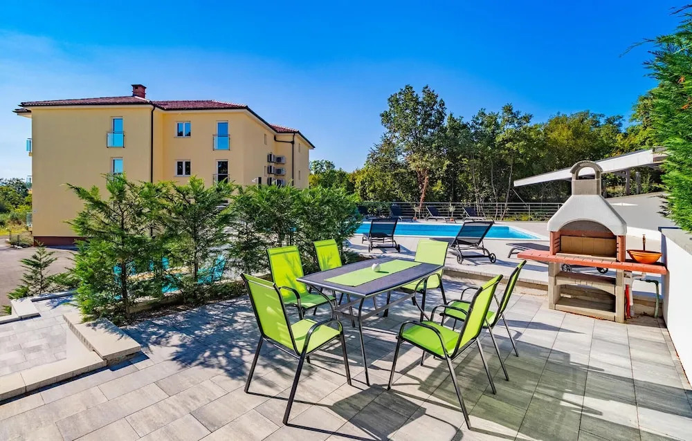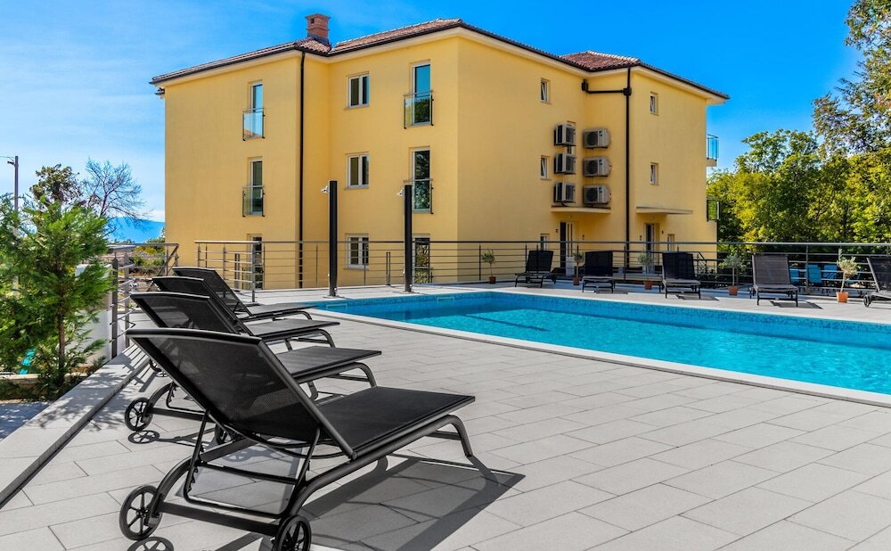 Отель Beautiful Apartment in Kostrena Sveta Lucij with Outdoor Swimming Pool, Hot Tub, 3 Bedrooms, адрес на карте Риека, Doricici 17, с характеристиками номеров и доступностью онлайн бронирования на сайте vashotel.ru , цены проживания и удобства.