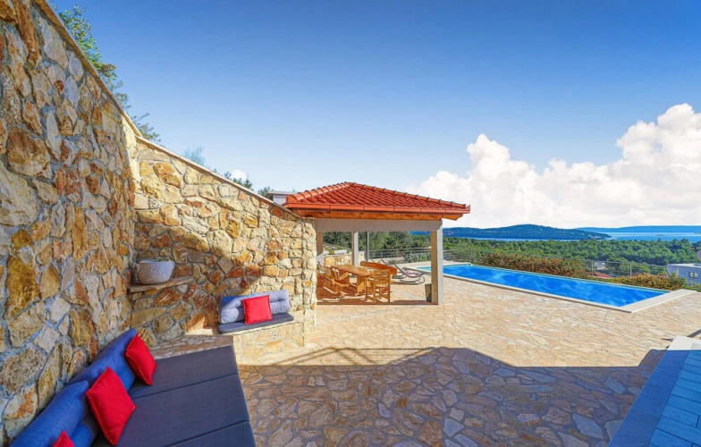 Отель Stunning Home in Seget Vranjica with Outdoor Swimming Pool, Hot Tub & 4 Bedrooms 3 звезды, адрес на карте Сегет Враньица, Put Kose 8, с характеристиками номеров и возможностью онлайн бронирования на сайте vashotel.ru , стоимость проживания и удобства.