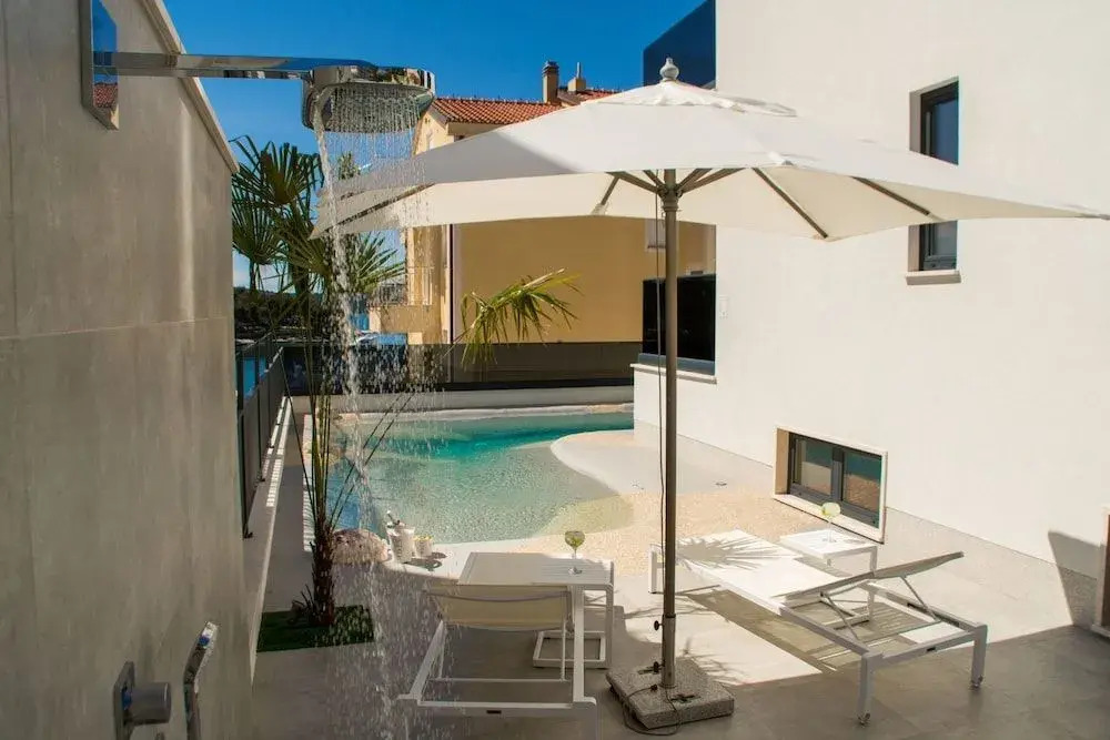 Отель Luxury Apartments Royal M with Pool, адрес на карте Трогир, Ulica Kralja Tomislava 75, с описанием номеров и возможностью онлайн бронирования на ресурсе vashotel.ru , цены проживания и удобства.