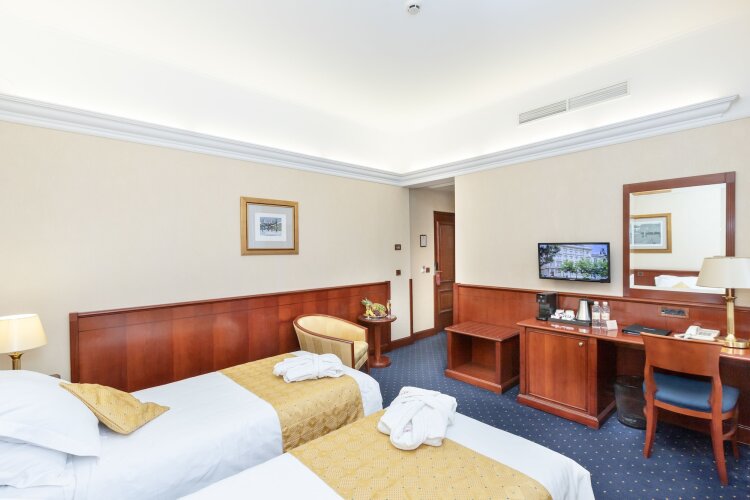 В отеле 118 номеров, 3 апартаментов и 2 люкса. Вы можете забронировать номера с изысканным интерьером в стиле ретро, балконом и потрясающим видом из окна на знаменитый парк по выгодной цене. Бесплатный Wi-Fi Интернет позволит вам всегда оставаться на связи. Также в каждом номере установлен телевизор, есть вентиляция и мини-бар.