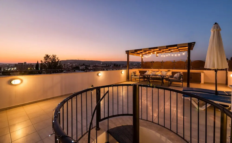 Отель Private Roof Top Terrace Overlooking Pool in Pyla, адрес на карте Ороклини, Blue Serenity complex, с описанием номеров и правом онлайн бронирования на сайте ВашОтель.RU , цены проживания и удобства.