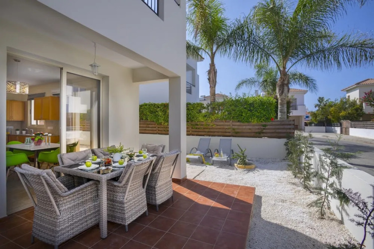 Отель Faros Villa Shamrock 4 звезды, адрес на карте Пляж Pervolia, Villa Faros Archiepiskopou Makariou III, 7560 Larnaca, Cyprus, с характеристиками номеров и доступностью онлайн бронирования на площадке vashotel.ru , стоимость проживания и удобства.