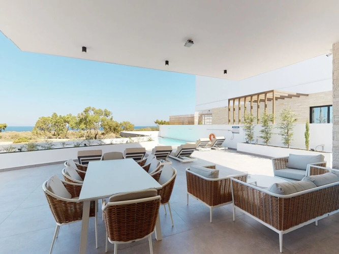 Отель Sanders Konnos Bay Melpomeni - 4-bdr Sea View Villa w brf 3 звезды, адрес на карте Протарас, Pontou 20, с характеристиками номеров и возможностью онлайн бронирования на ресурсе ВашОтель.RU , цены проживания и удобства.