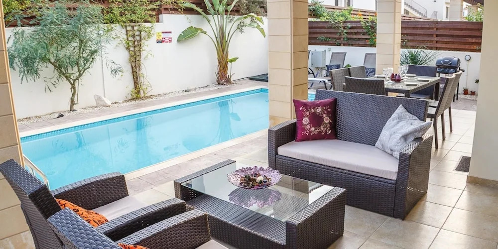 Отель Oceanview Luxury Villa 154 4 звезды, адрес на карте Протарас, 45 Perneras Street, Polyxenia Complex Pernera, с характеристиками номеров и возможностью онлайн бронирования на сайте vashotel.ru , цены проживания и удобства.