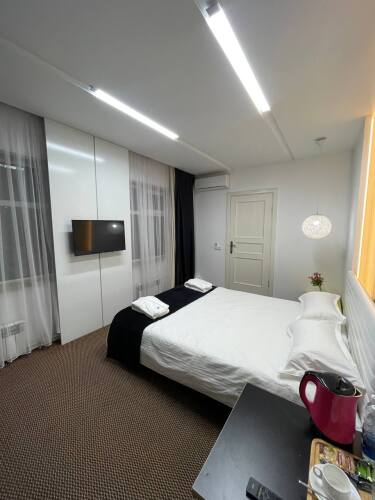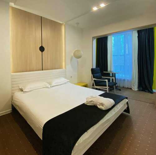 Номер уютно обставлен и оснащён необходимым, чтобы отдохнуть после долгого и насыщенного дня. Имеются телевизор и халат. Перечисленные услуги есть не во всех номерах.