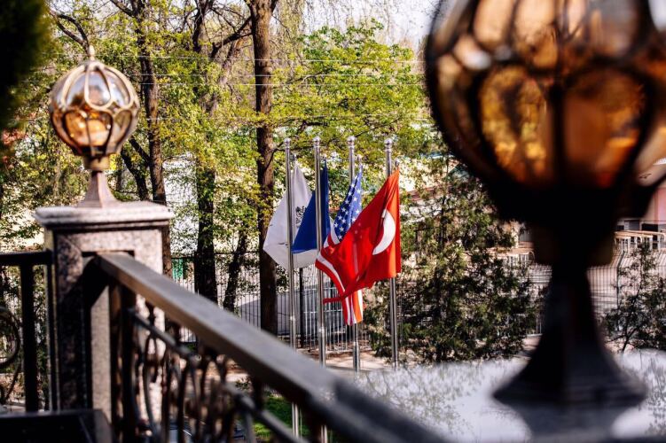 Отель Plaza Bishkek 4 звезды, адрес на карте Бишкек, ул. Тоголок Молдо, д. 52, с описанием номеров и доступностью онлайн бронирования на ресурсе vashotel.ru , цены проживания и удобства.