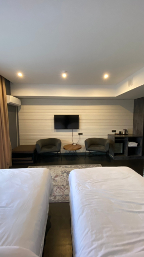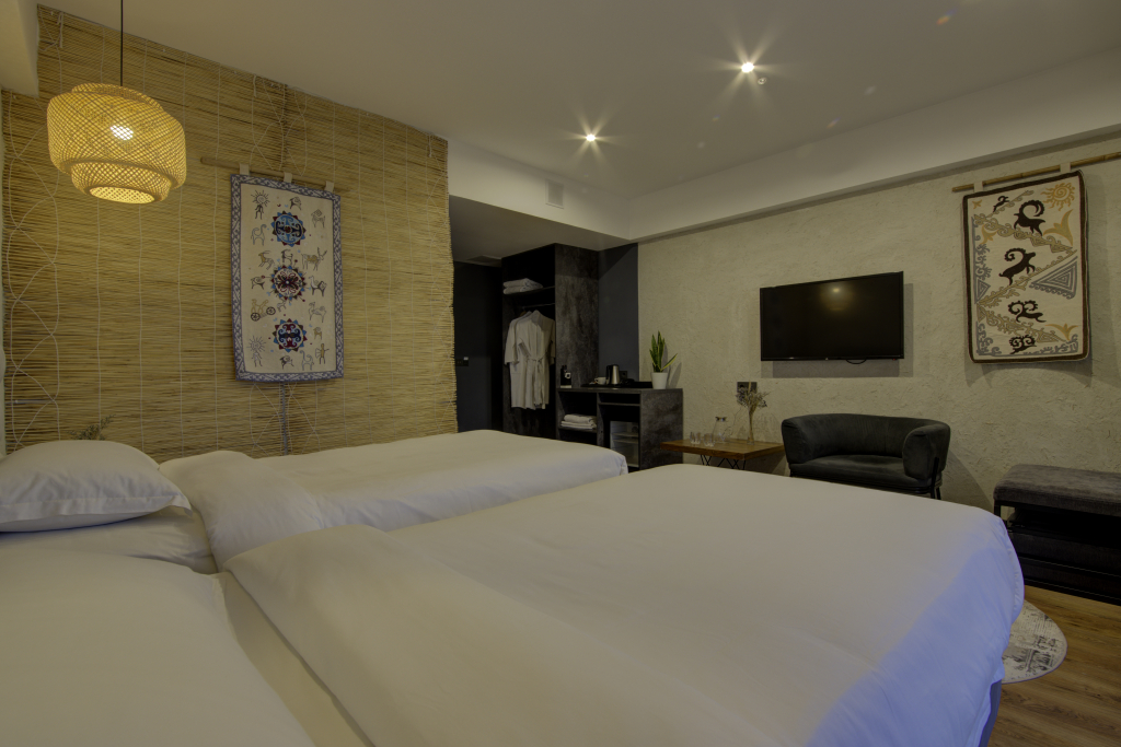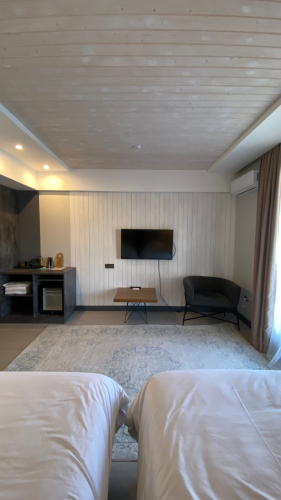В номере вы найдёте телевизор и халат. Оснащение зависит от выбранной категории номера.