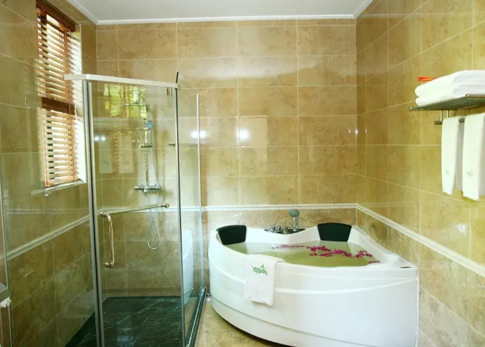 В номере вы найдёте душ. Оснащение зависит от выбранной категории номера.