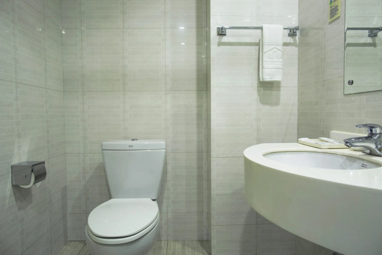 В номере вы найдёте душ, телевизор и тапочки. Оснащение зависит от выбранной категории номера.