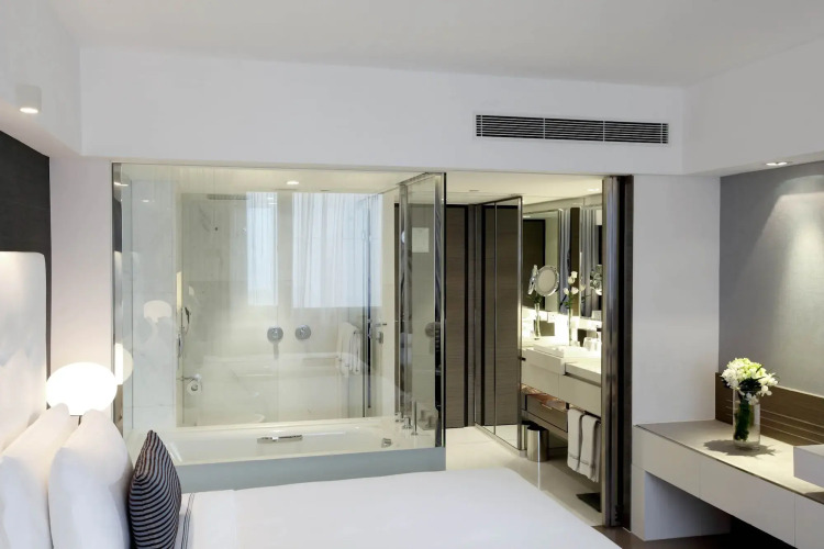 Отель состоит из 492 просторных номеров, оформленных с удачным использованием зональной подсветки. К услугам гостей предлагается кондиционер, ЖК-телевизор, сейф и мини-бар.