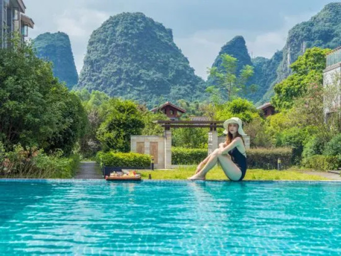 Отель Sino County Resort Hotel 3 звезды, адрес на карте Яншо, No.39 Dongling Road (Lijiang Panlongwan), Yangshuo, Guangxi, China, с характеристиками номеров и правом онлайн бронирования на сайте vashotel.ru , стоимость проживания и удобства.
