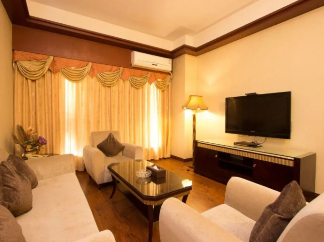 В номере вы найдёте телевизор и тапочки. Оснащение зависит от выбранной категории номера.