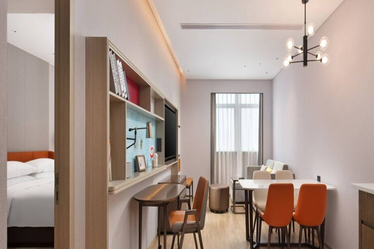 Отель Home2 Suites By Hilton Fuzhou Cangshan, адрес на карте Фучжоу, Block B of Shanya Building 216 Shangsan Road,Shangsan Road, с описанием номеров и возможностью онлайн бронирования на площадке ВашОтель.RU , цены проживания и удобства.