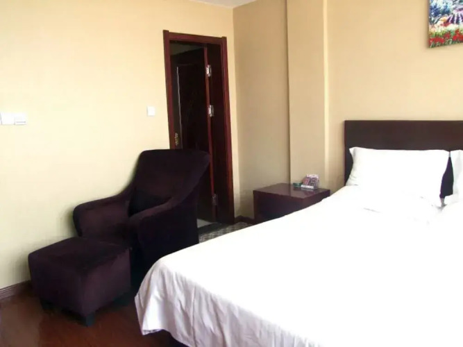 Отель GreenTree Inn Heze Cao County Qinghe Road Business Hotel 3 звезды, адрес на карте Хецзе, Junction of Qinghe Road and Qing Jiang Road, с описанием номеров и возможностью онлайн бронирования на сайте ВашОтель.RU , стоимость проживания и удобства.