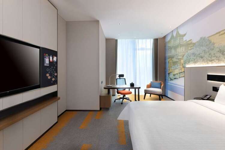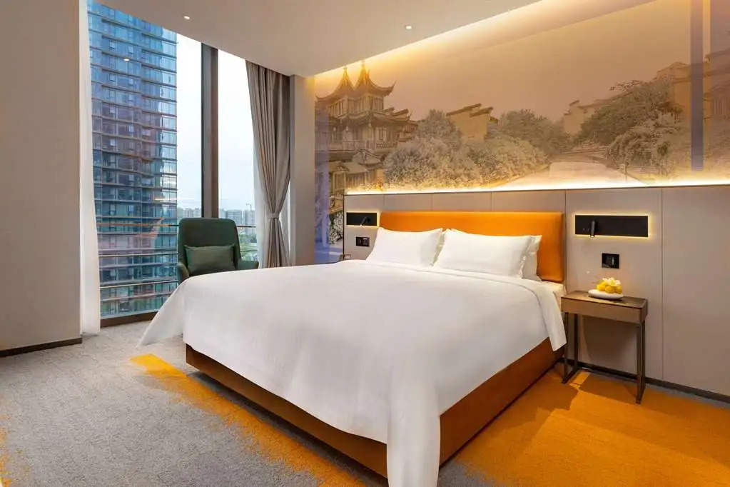 Отель Hampton by Hilton Nanjing Jiangning Qilin, адрес на карте Нанкин, No.96 Binyuan Road, Qilin Street, Nanjing, 211135, China, с описанием номеров и доступностью онлайн бронирования на площадке ВашОтель.RU , стоимость проживания и удобства.