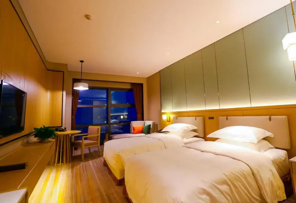 Отель Hai Tian Hong Dao International Convention&Exhibition Center Hotel 4 звезды, адрес на карте Циндао, 326 Huoju Road High-Tech Zone Chengyang District 266000 Qingdao, с описанием номеров и доступностью онлайн бронирования на ресурсе vashotel.ru , стоимость проживания и удобства.