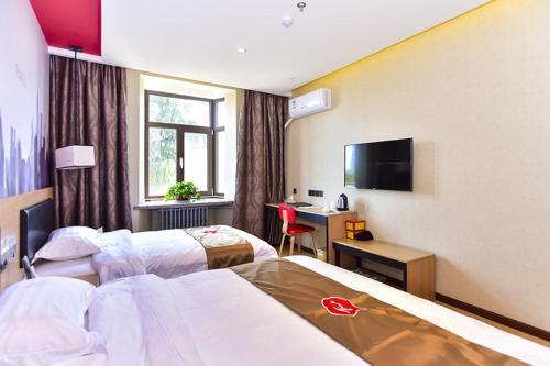 Отель Thank Inn Chain Hotel Shandong Qingdao Development Zone 2nd Xiangjiang Road 2 звезды, адрес на карте Циндао, No. 37, 2nd Xiangjiang Road, Development Zone, с описанием номеров и возможностью онлайн бронирования на сайте vashotel.ru , цены проживания и удобства.
