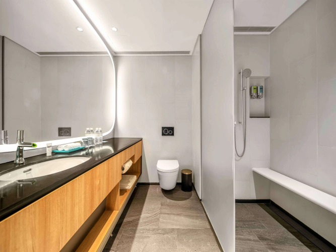 В номере вы найдёте будильник, душ, телевизор, мини-бар, халат и тапочки. Оснащение зависит от выбранной категории номера.
