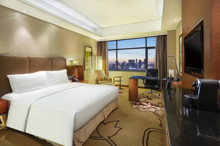 Четырехзвездочный отель DoubleTree by Hilton Shenyang предлагает размещение в 389 комфортабельных номерах с ванной и совмещенным санузлом, расположенных в двух 19-этажных корпусах. В ванной комнате имеется ручной душ с дождевой насадкой и фен. Стандартная комплектация включает кондиционер, телевизор и мини-бар. При необходимости вы сможете воспользоваться телефоном и гладильными принадлежностями. Для хранения ценностей предусмотрен сейф. Обслуживание номеров производится ежедневно.
