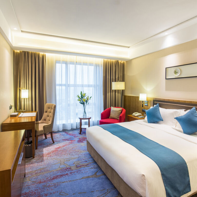 Чтобы вы могли отдохнуть после долгого дня, в номере есть будильник, телевизор, мини-бар и тапочки. Оснащение зависит от выбранной категории номера.
