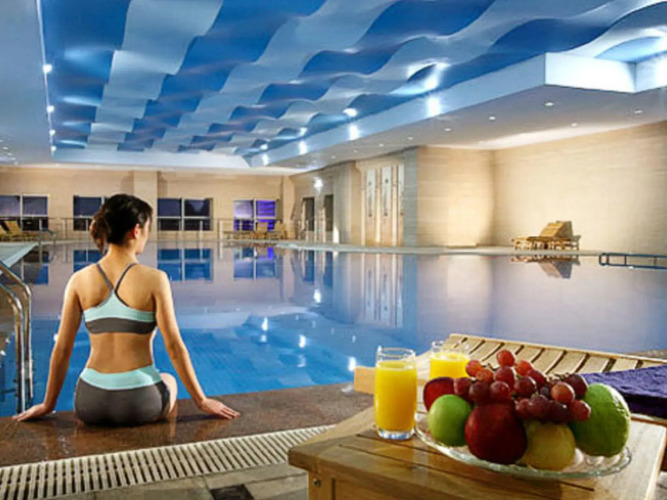 Отель располагает современным фитнес-центром и крытым плавательным бассейном, где вы сможете поддерживать форму. К вашим услугам роскошный спа-центр Yue Spa, где вам предложат побаловать себя специальными спа-процедурами для лица и тела, расслабиться в бассейне с подогревом, сделать массаж, а также посетить великолепный банный комплекс, состоящий из сауны, русской и турецкой бани. Гордостью отеля является собственный аквапарк с открытыми бассейнами и водными аттракционами для детей.
