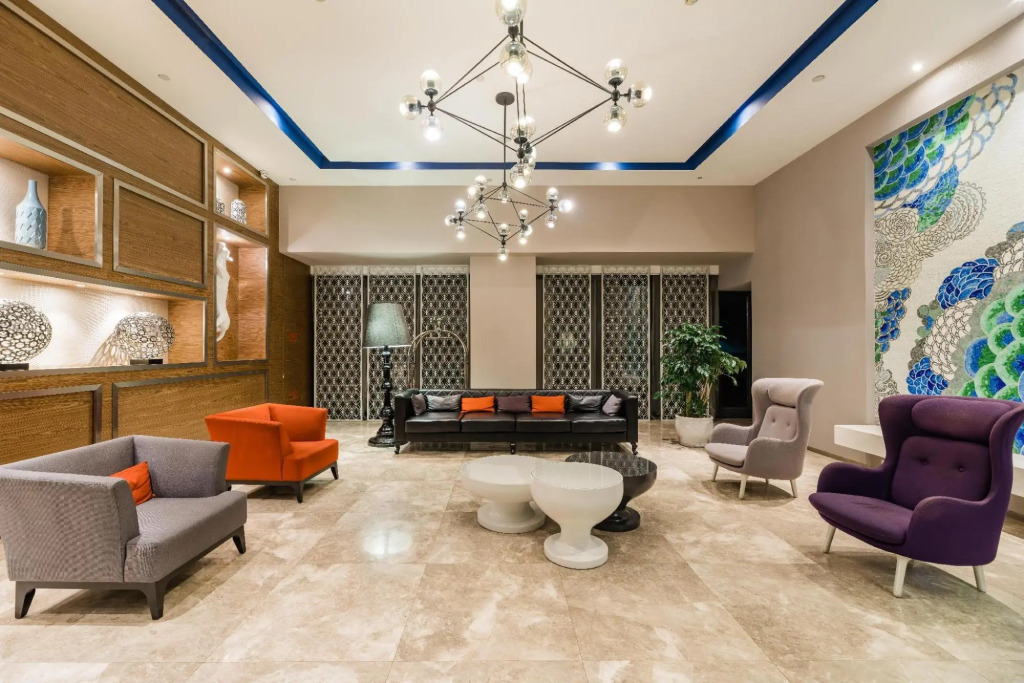 Номер уютно обставлен и оснащён необходимым, чтобы отдохнуть после долгого и насыщенного дня. Имеются душ, телевизор, мини-бар и тапочки. Оснащение зависит от выбранной категории номера.