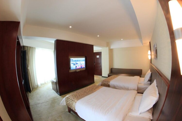 Номер уютно обставлен и оснащён необходимым, чтобы отдохнуть после долгого и насыщенного дня. Имеются телевизор, мини-бар и тапочки. Оснащение зависит от выбранной категории номера.