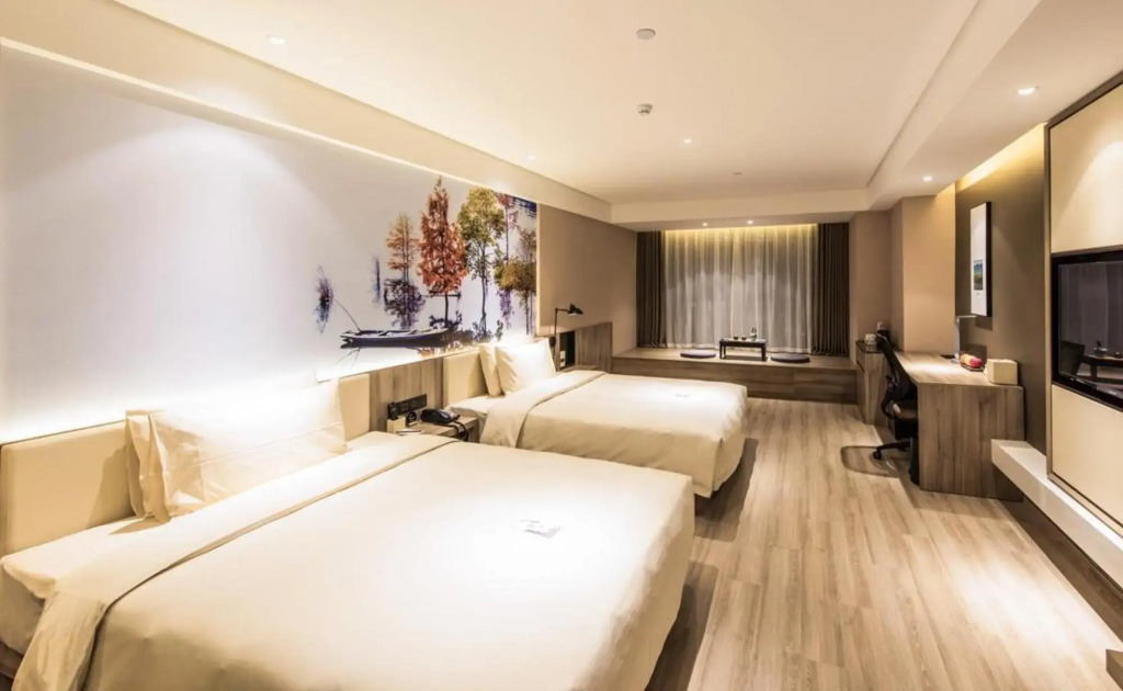 Отель Atour Hotel North High Speed Railway Station Xian 3 звезды, адрес на карте Сиань, Blk B, Yifang Zhonggang Intl, Wenjing Rd, с характеристиками номеров и доступностью онлайн бронирования на сайте ВашОтель.RU , цены проживания и удобства.