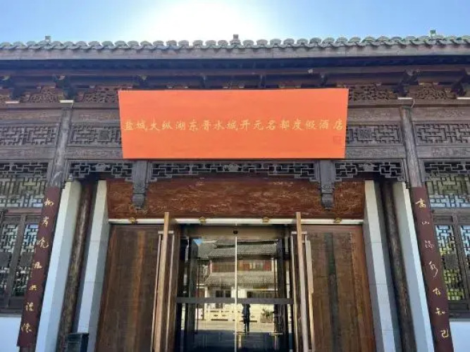 Отель Yancheng Dazonghu East Jinshuicheng Kaiyuan Mingdu Resort Hotel 4 звезды, адрес на карте Яньчэн, Dazong Lake Resort, Yandu District, Yancheng, Jiangsu, China, с описанием номеров и возможностью онлайн бронирования на площадке vashotel.ru , цены проживания и удобства.