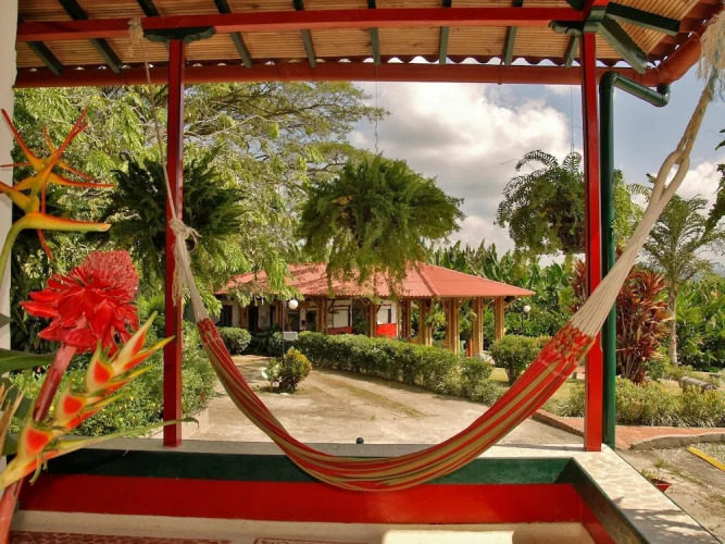 Отель Hostal Portal del Samán, адрес на карте Армения, Kilometro 8 vía Armenia Pueblo Tapao, с описанием номеров и правом онлайн бронирования на сайте vashotel.ru , цены проживания и удобства.