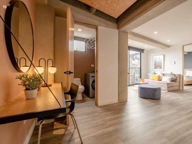 Отель w Homey 1BR in Zona G, адрес на карте Богота, Cl. 54a #5-14 Bogotá Colombia, с описанием номеров и доступностью онлайн бронирования на ресурсе vashotel.ru , цены проживания и удобства.